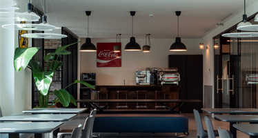 A la entrada, justo después de la sala de exposición que narra la historia de BRAIN BEE y MAHLE a través de sus productos automovilísticos de mayor éxito, se abre el Ágora: un área dedicada a la mejor hospitalidad italiana, elemento distintivo de esta sede y especialmente apreciado tanto por los clientes como por quienes trabajan allí cada día.