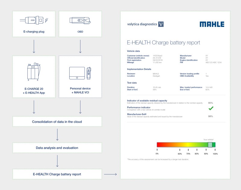 El estado de salud (SoH) de la batería de tracción de los vehículos eléctricos es el parámetro clave para identificar el «estado» de la pieza más cara de los vehículos de los clientes. MAHLE ofrece ahora una forma rápida y fiable de evaluar las baterías de tracción de los vehículos eléctricos de sus clientes mientras se cargan.